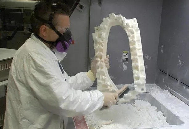 其加工过程是,由计算机控制的激光头按一定轨迹进行扫描,在激光经过的位置上,塑料微粉受热熔化并粘结在一起,每扫描完一次,微粉装置就撒一层薄粉,这样,经过反复扫描,就形成了具有一定形状和尺寸的制品。现在,国内已有一些企业能够生产激光扫描成型机和塑料微粉,但设备性能不稳定,微粉的品种牌号也少。